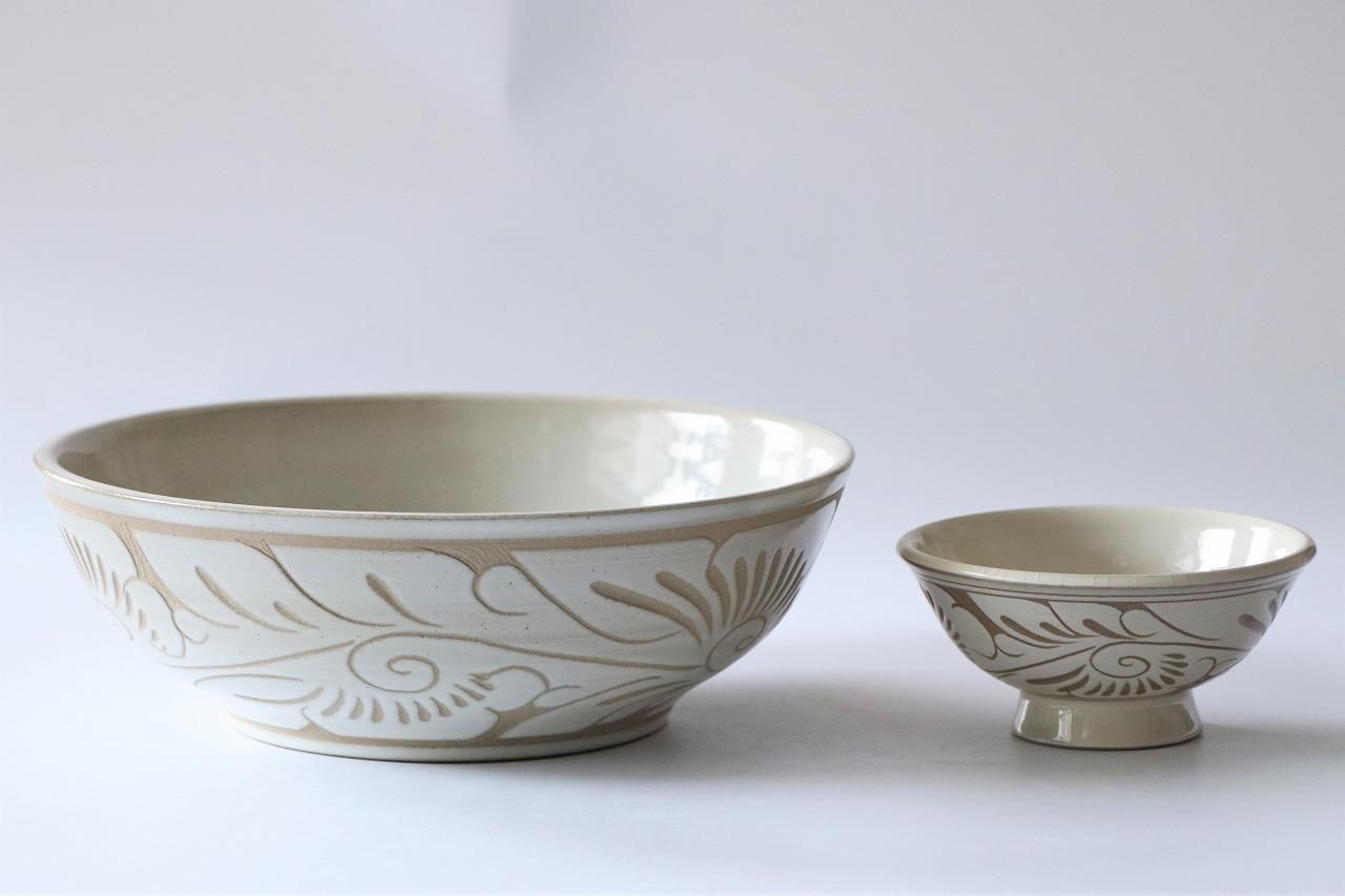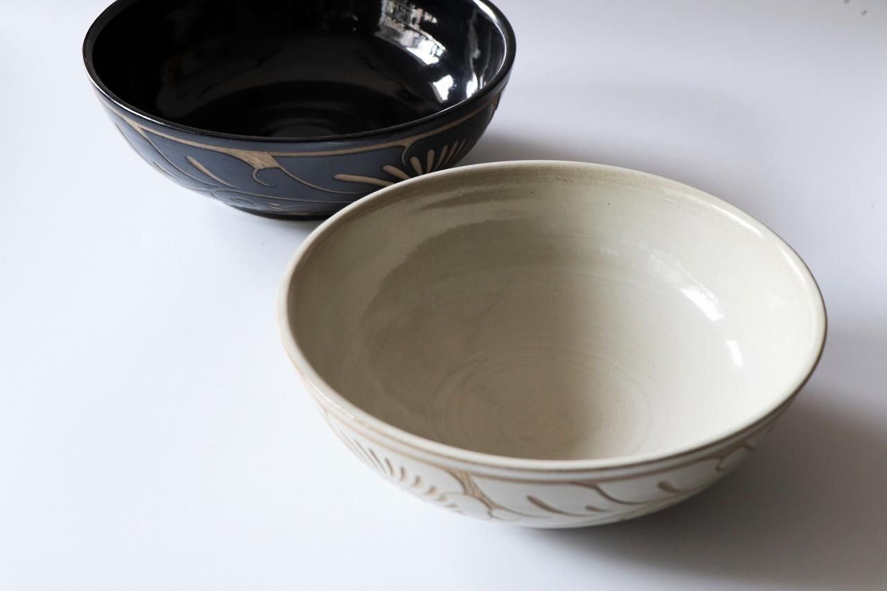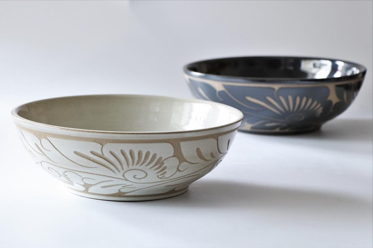 [バリエーション] 2色 白唐草線彫/黒釉唐草線彫