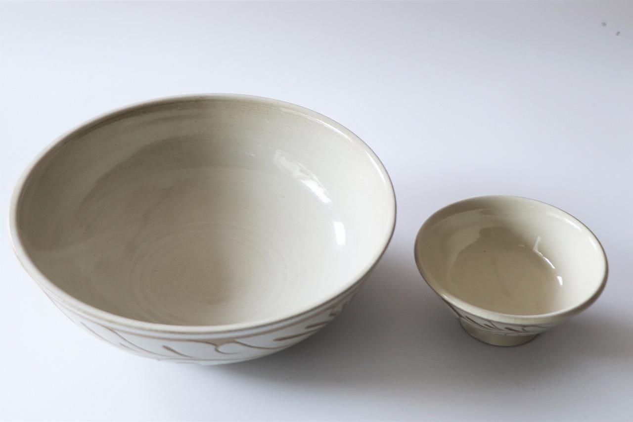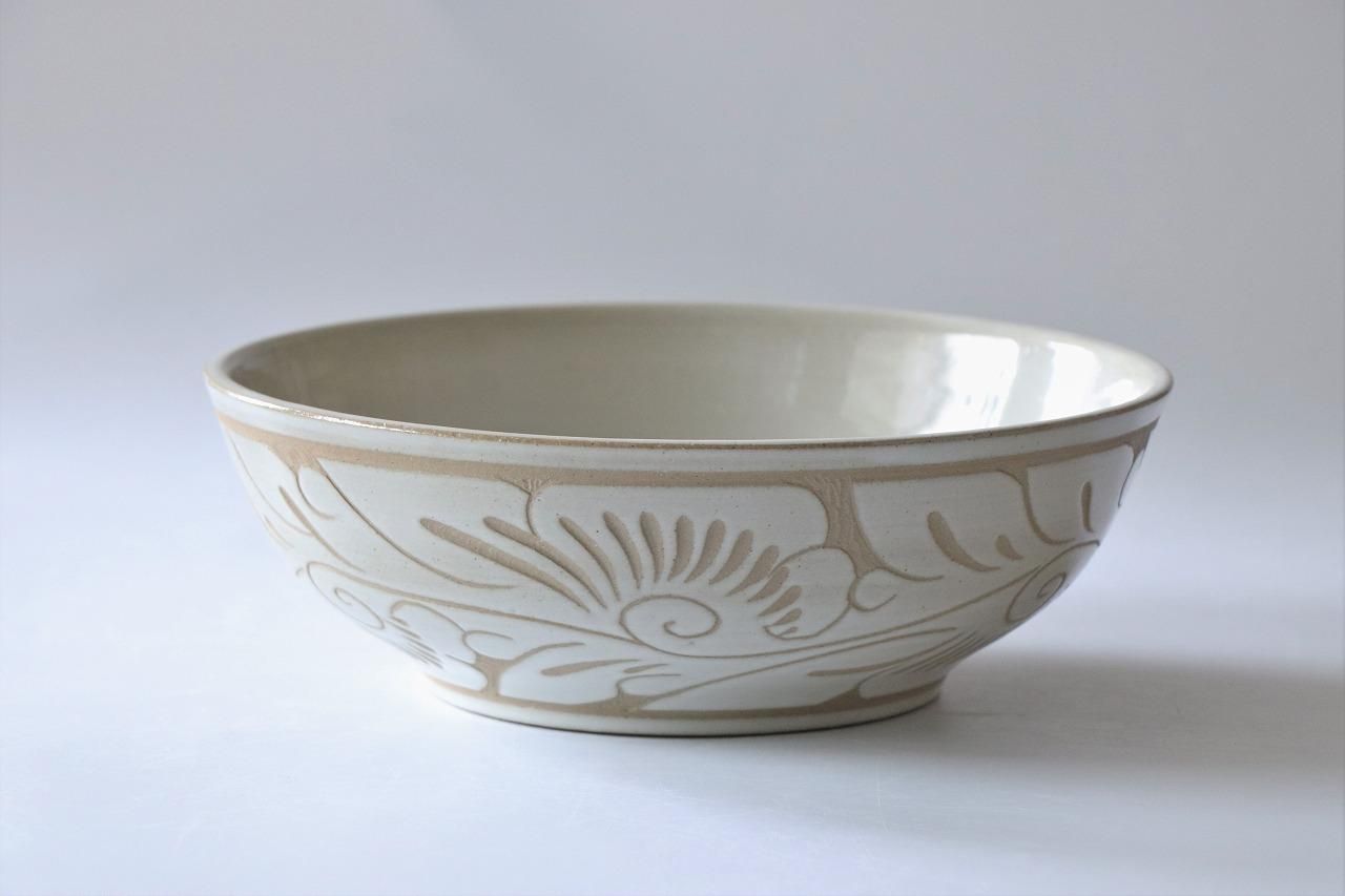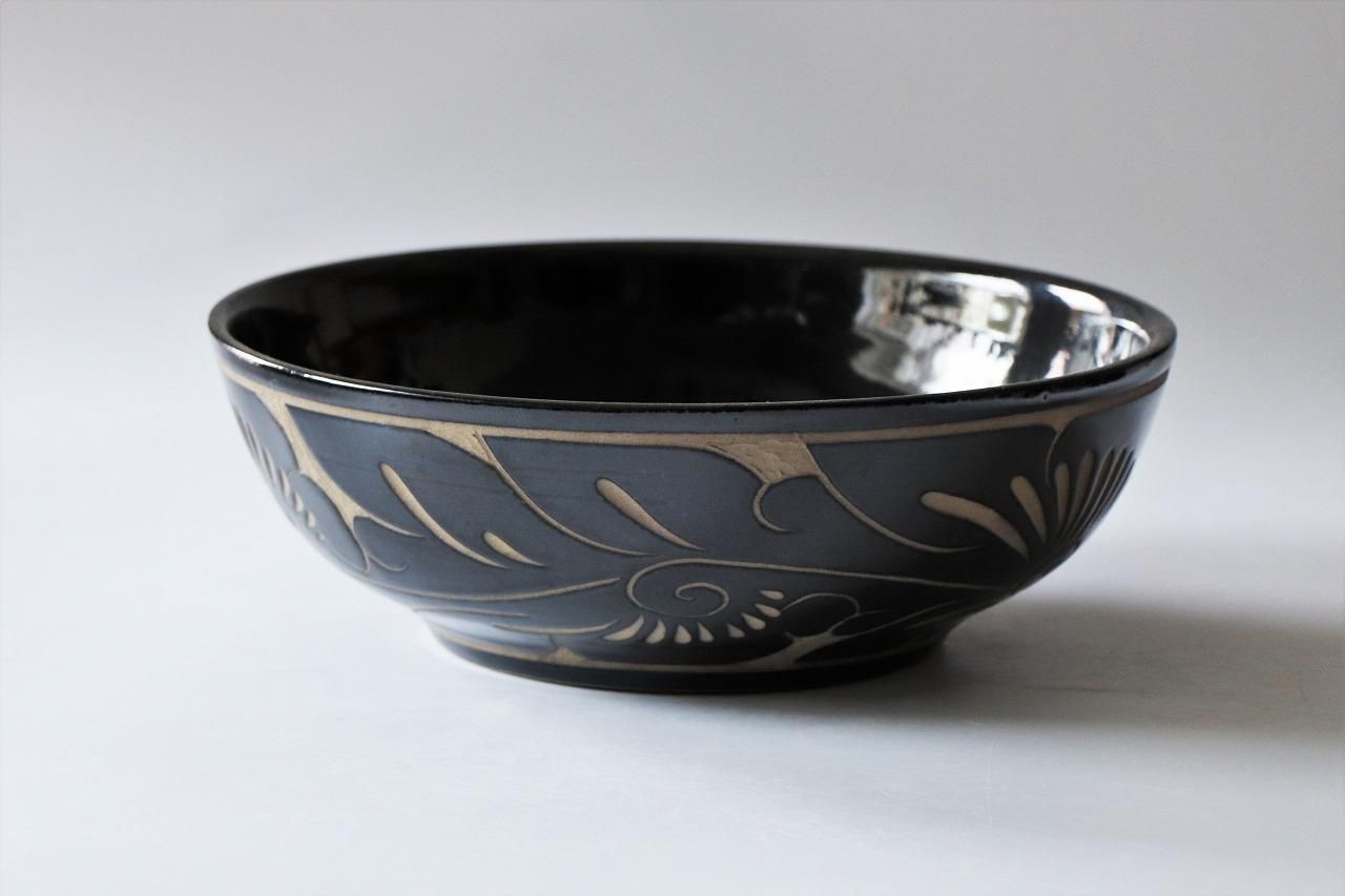 [バリエーション] 2色 白唐草線彫/黒釉唐草線彫