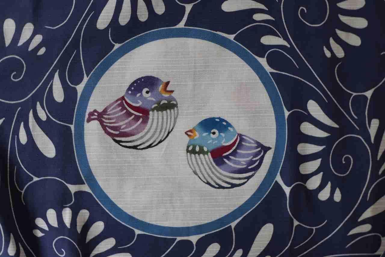 知念紅型研究所さんの紅型でも度々登場する愛らしい姿の“ふくら雀“をコラボのメインビジュアルとして提案してくださり、新たに手を加えデザインを起こしてくださいました。ふくら雀は、本染めされています。