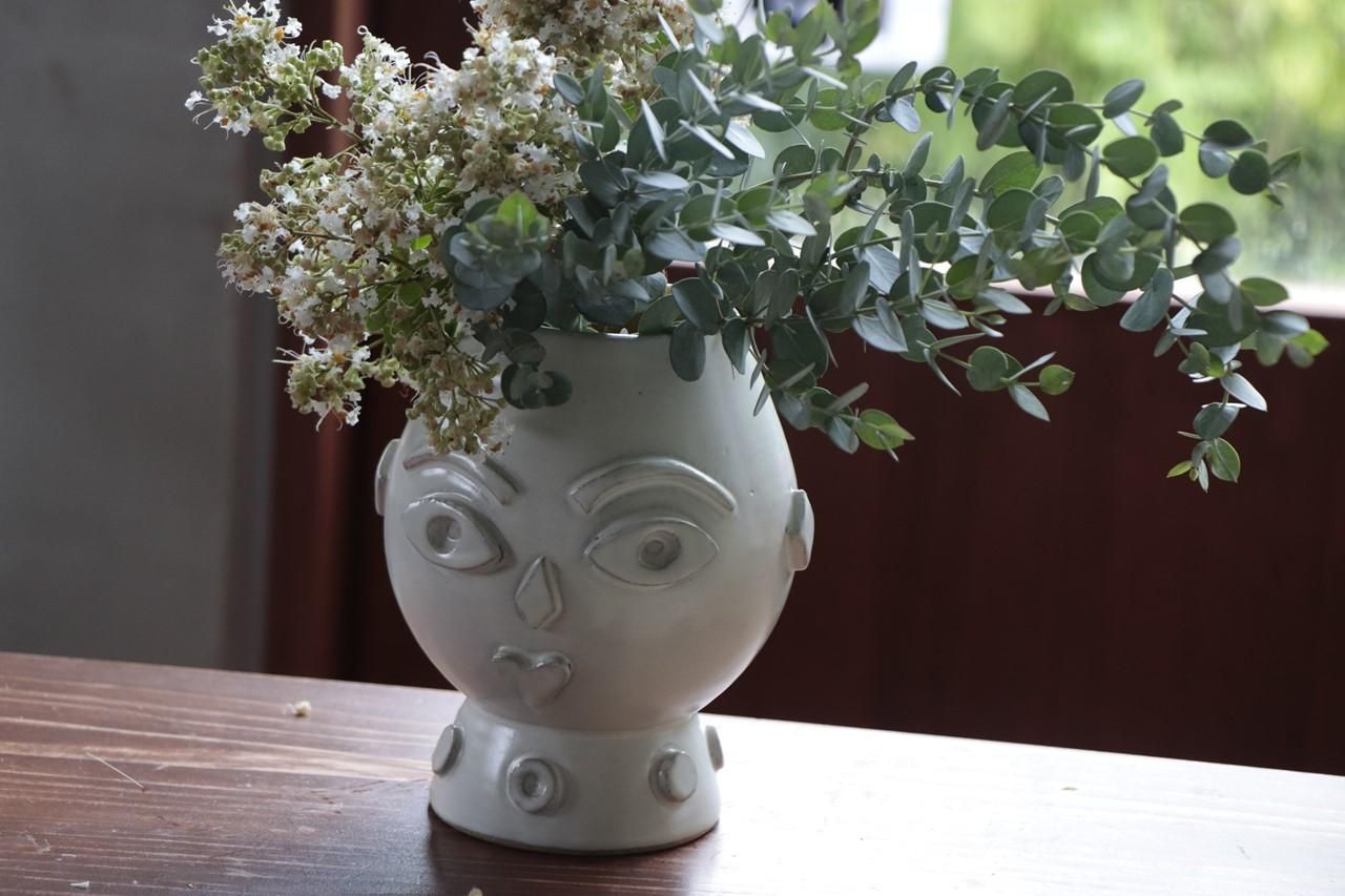 一つ一つ個性の違う表情がユニークで、オブジェとしても花器としても、