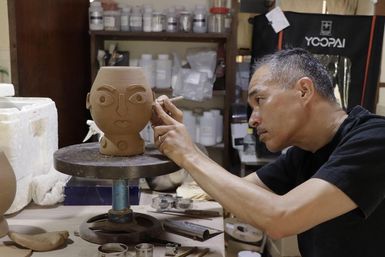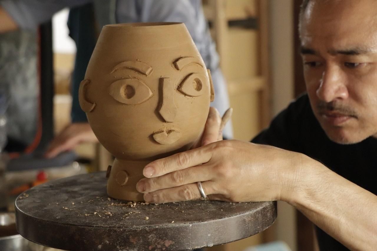 育陶園60 周年を記念して製作されたユニークな顔壺。