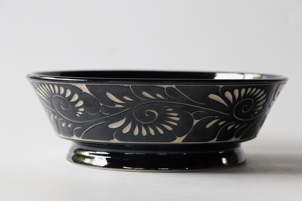 ずっしりとしたやちむんの高杯盆は、何をのせてもおいしそうに見えます。