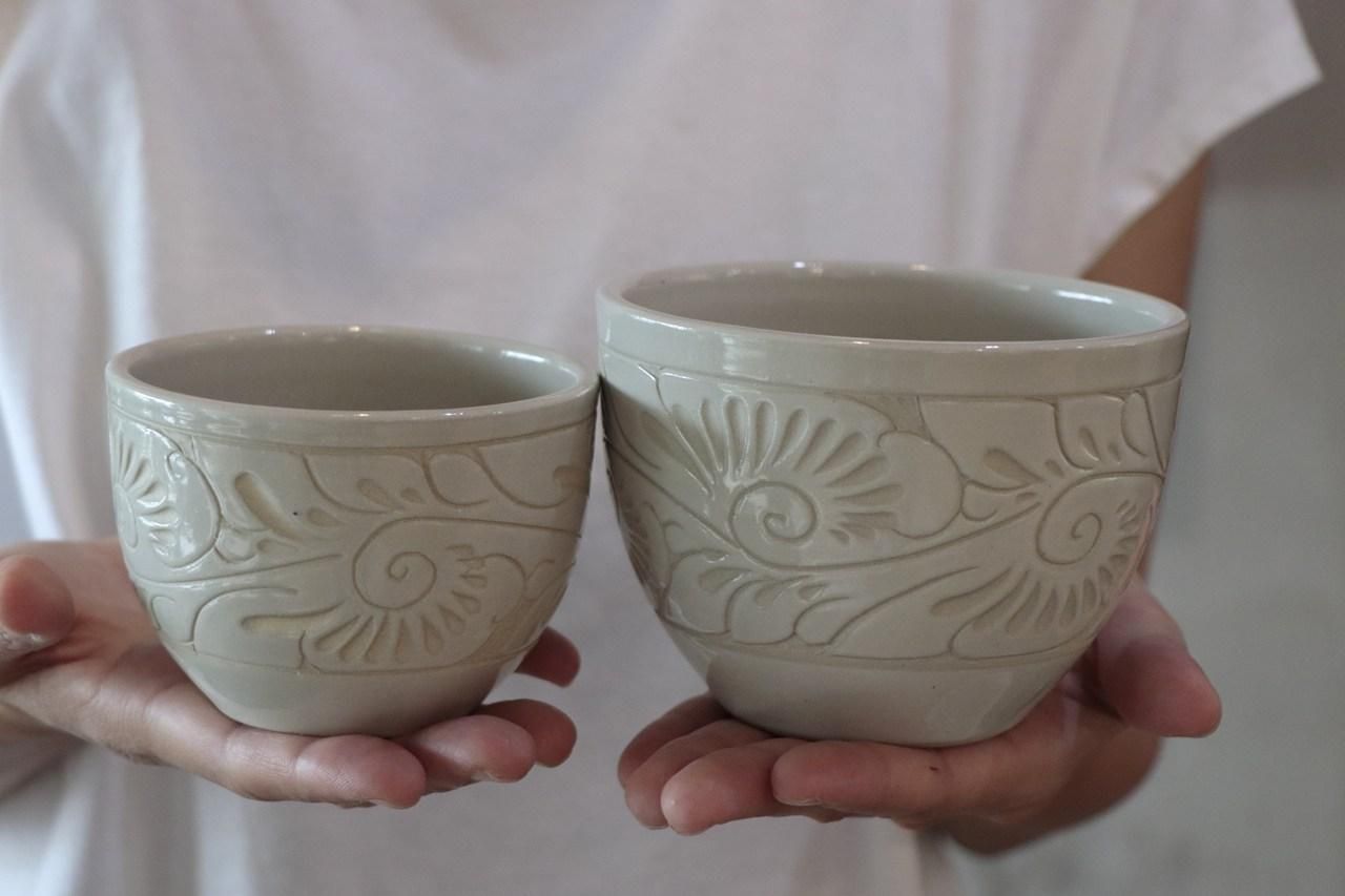 育陶園のやちむん(陶器)に描かれる文様の多くは、壺屋焼で古くから描かれる伝統文様です。縁起のよい意味合いのものが多く、それぞれに先人たちの想いが込められております。