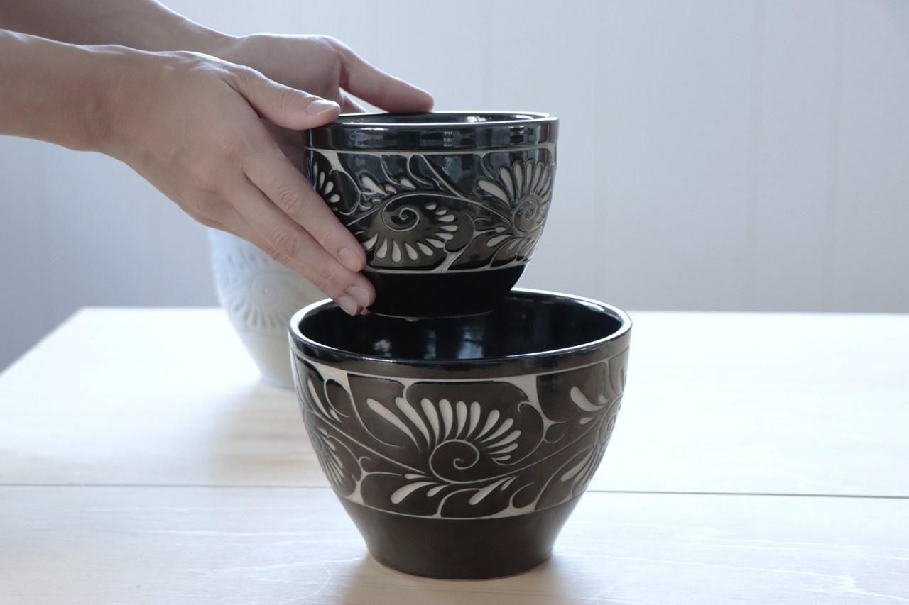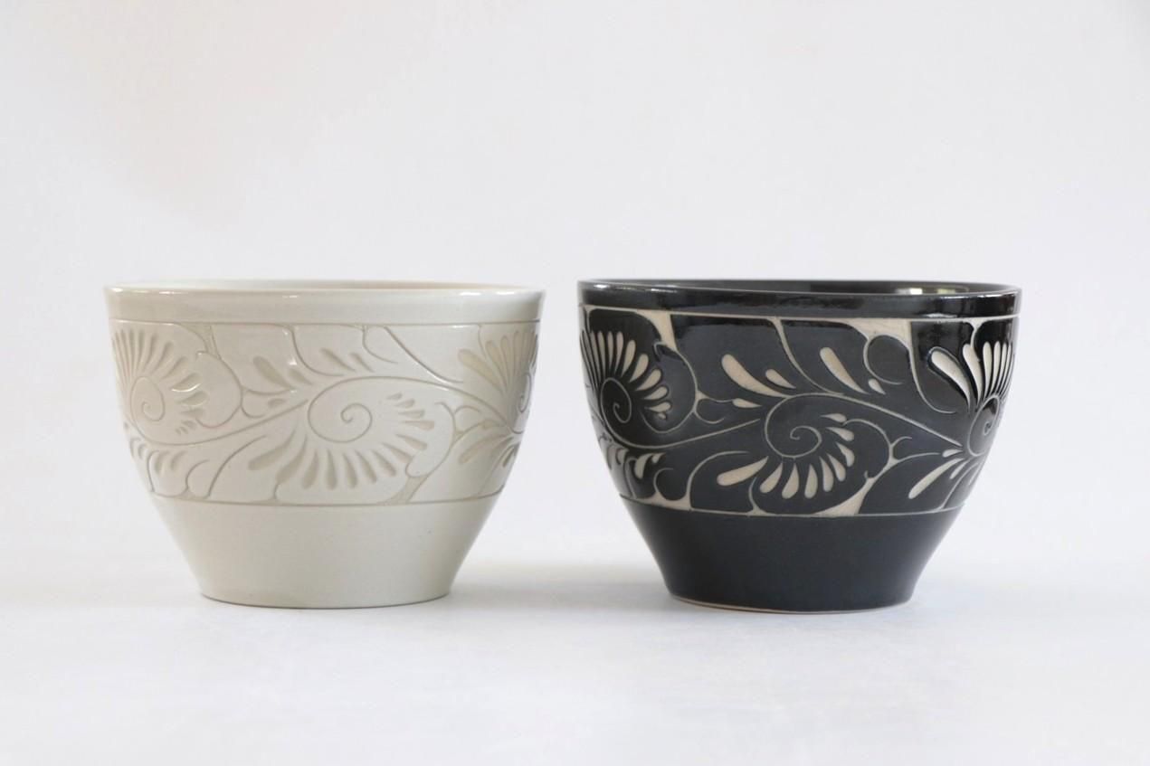 [バリエーション] 鉢小(2色 乳白 / 黒)、鉢中(2色 乳白 / 黒)、鉢大(2色 乳白 / 黒)