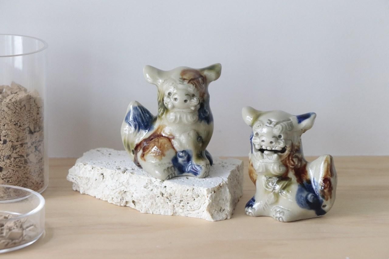 シーサー作りに用いられてきた伝統的な釉薬を使用しつつ、掛け方によって一つ一つ異なる表情が生まれるのが特徴です。