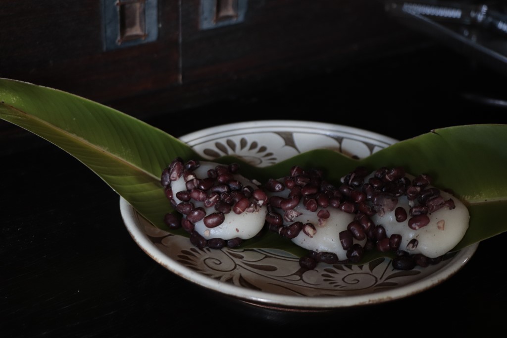 甘くないお餅に、塩気のある豆のふちゃぎ。