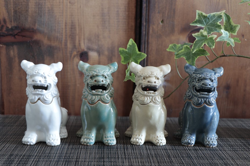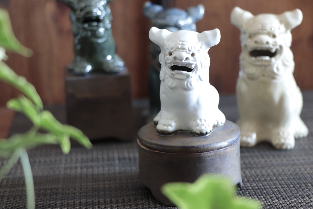 シーサーは乳白カラー、箱部分は燻色です。