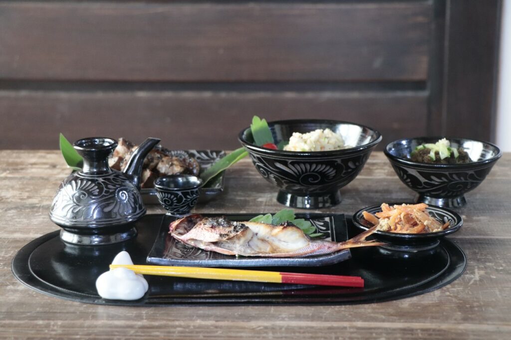 黒いやちむんで、揃えました。
