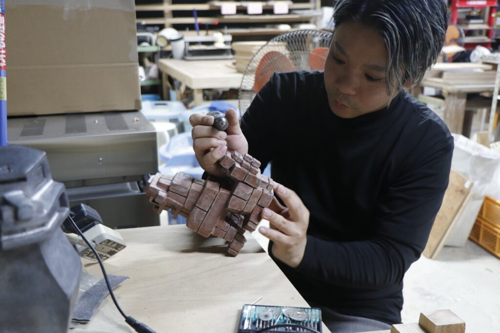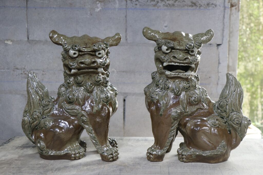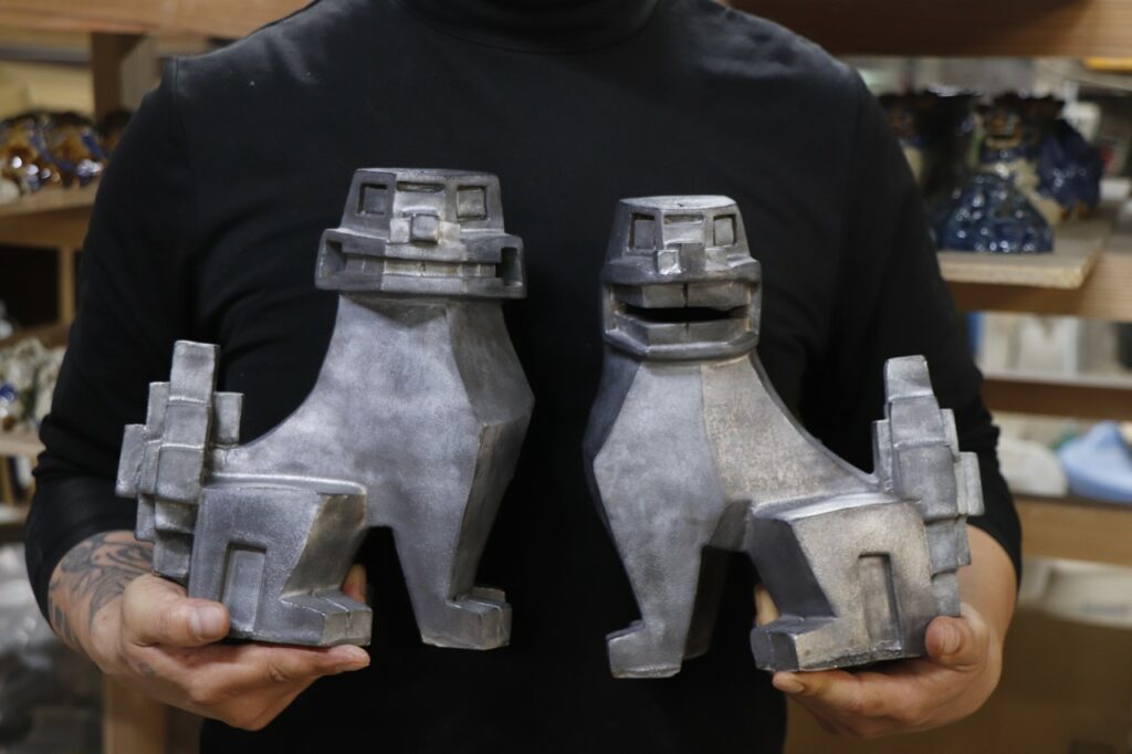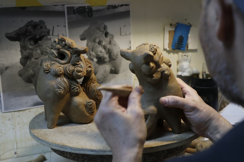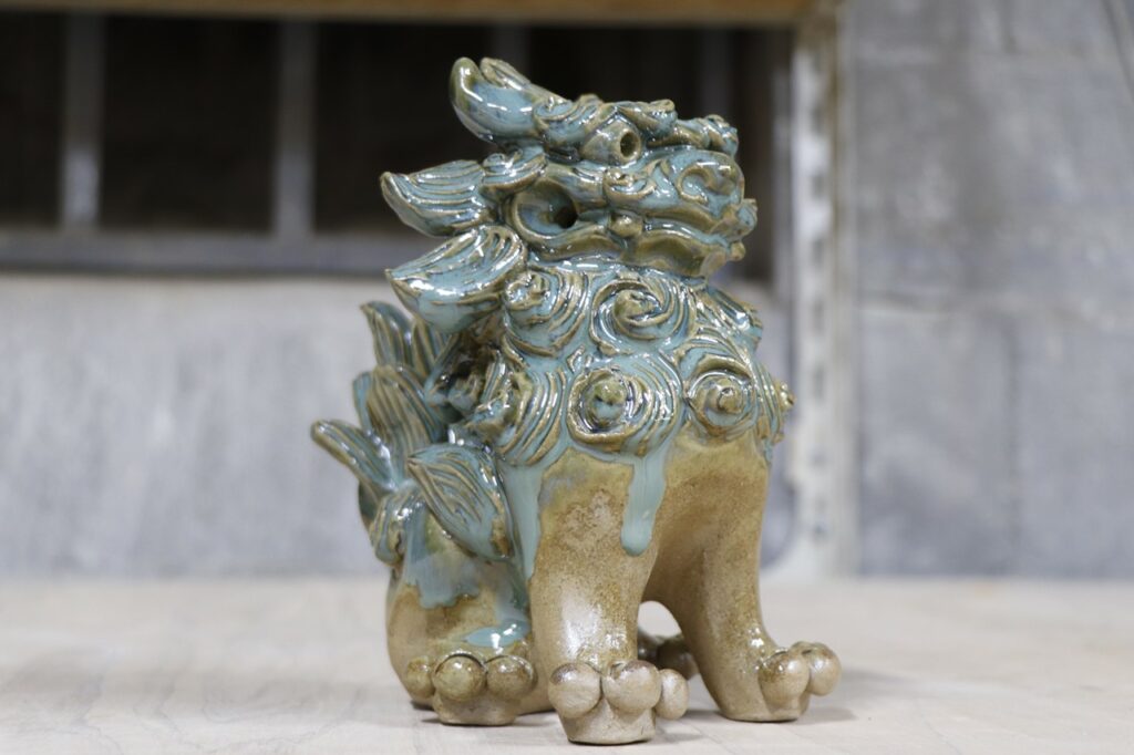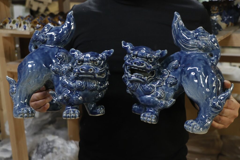 壺屋のシンボル・うふシーサーの清掃が行われました。